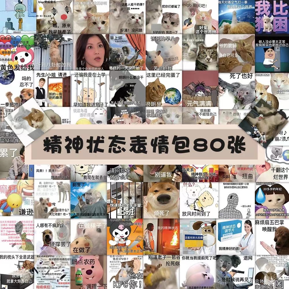 160张精神状态搞笑沙雕发疯文学表情包贴纸DIY手机壳电脑防水贴画