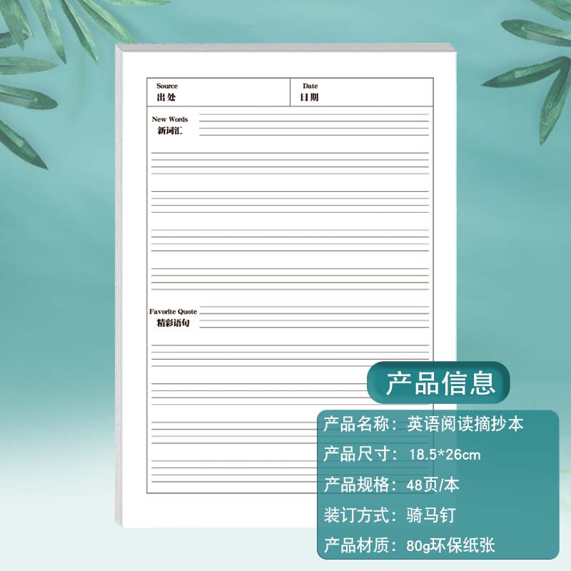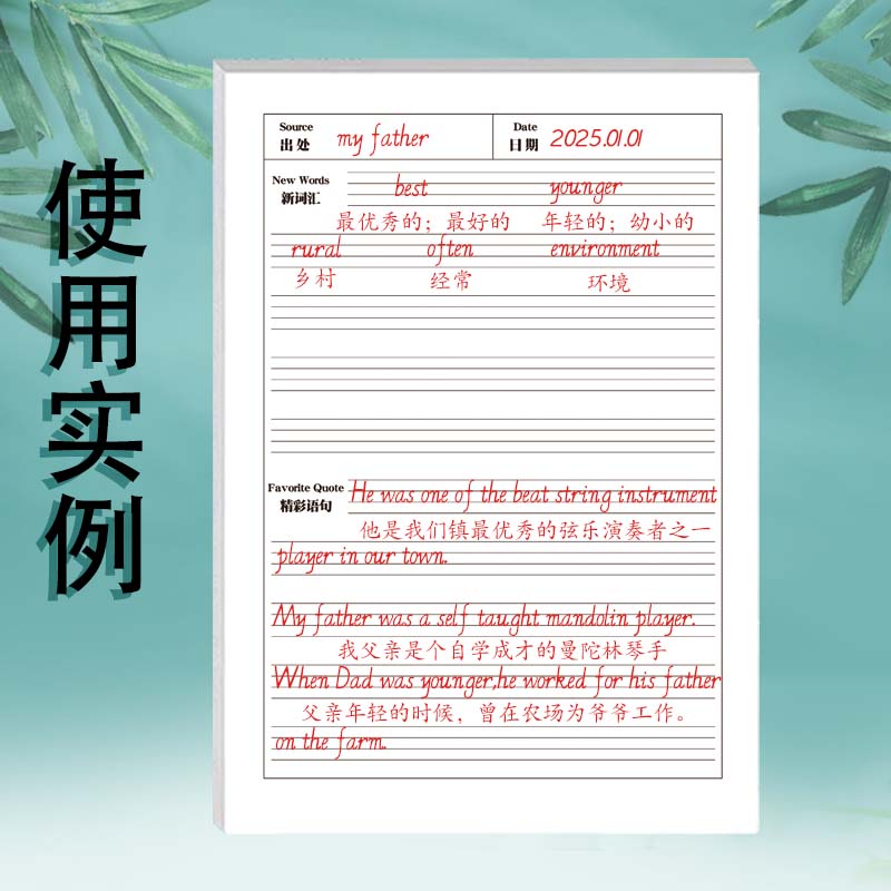 英语阅读摘抄本小学生初中生课内课外阅读新单词优美句子摘抄语文好词好句人物特点摘抄积累本一日一练天天练