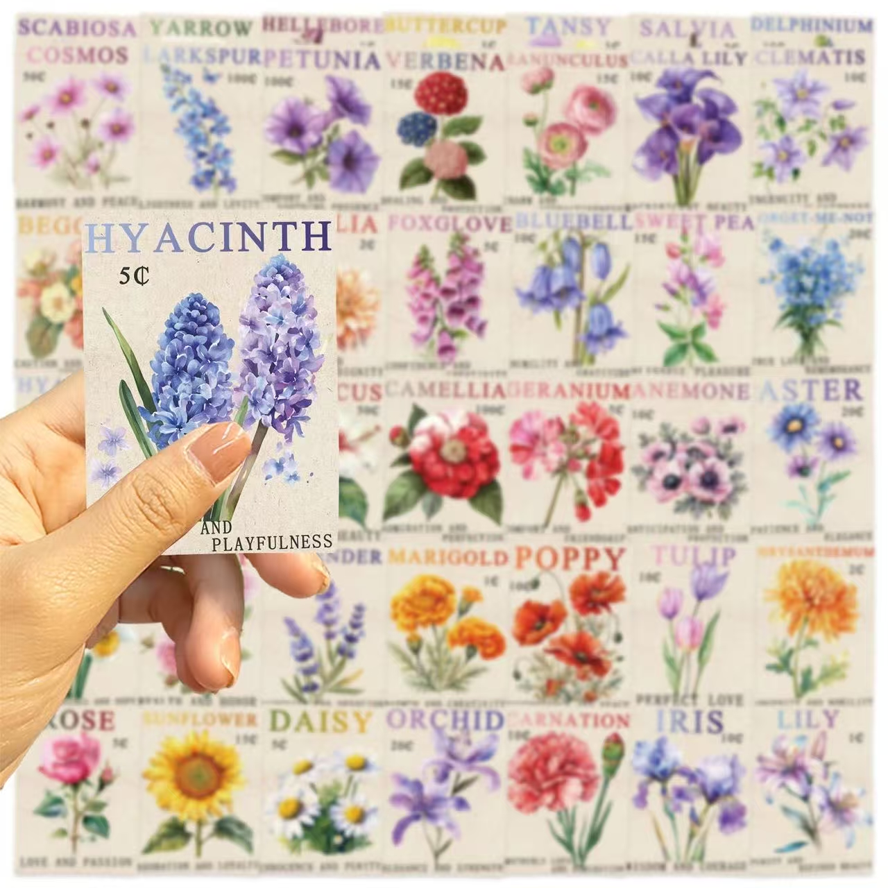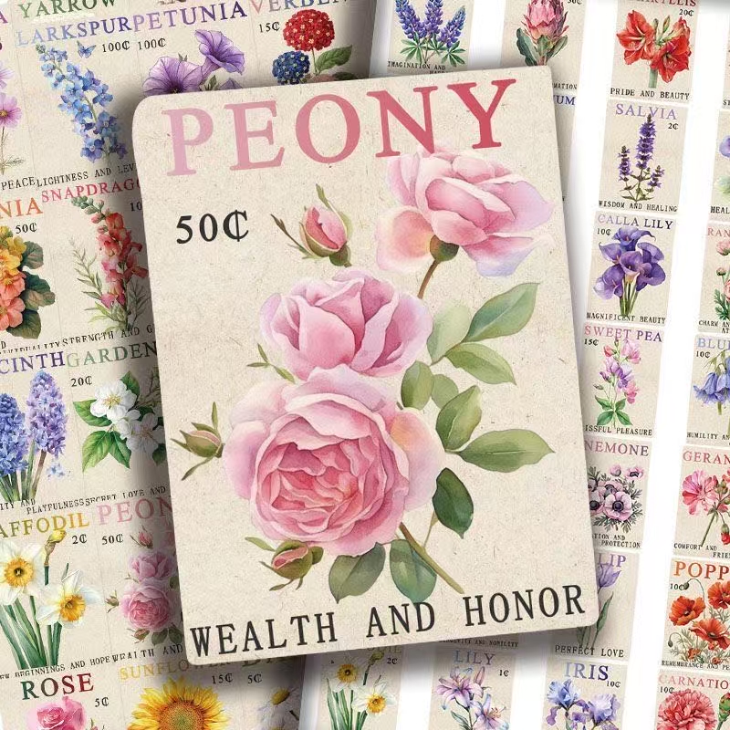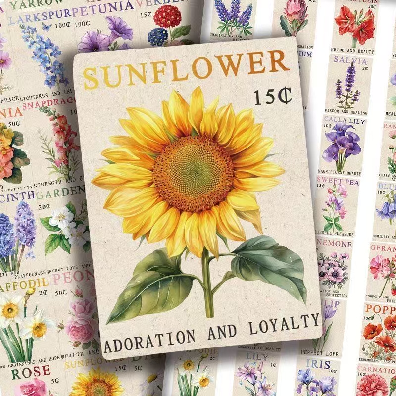 复古画报100张邮票花朵贴纸创意ins手机diy手帐桌面装饰贴画防水