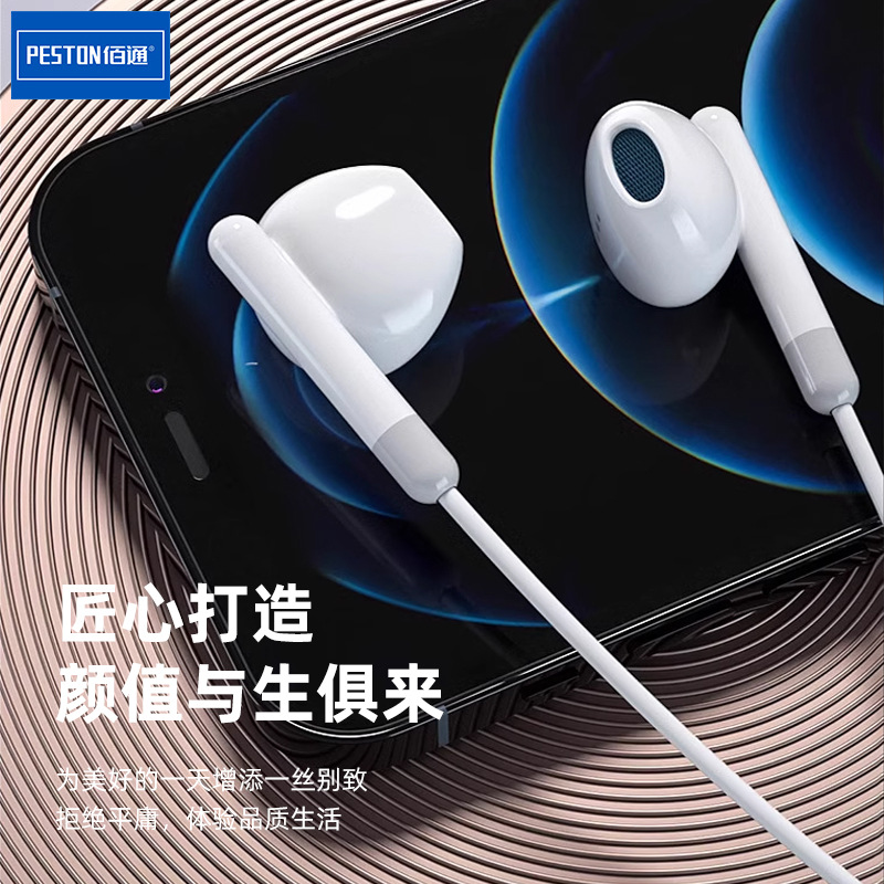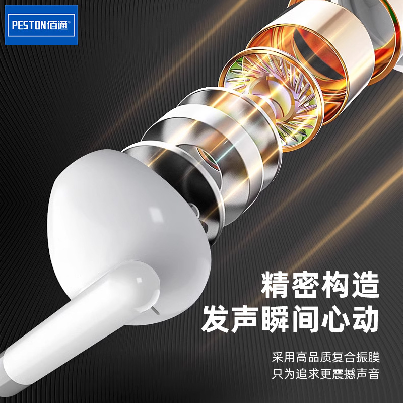 佰通半入耳式重低音type-c/3.5mm带麦线控通话听歌有线手机耳机