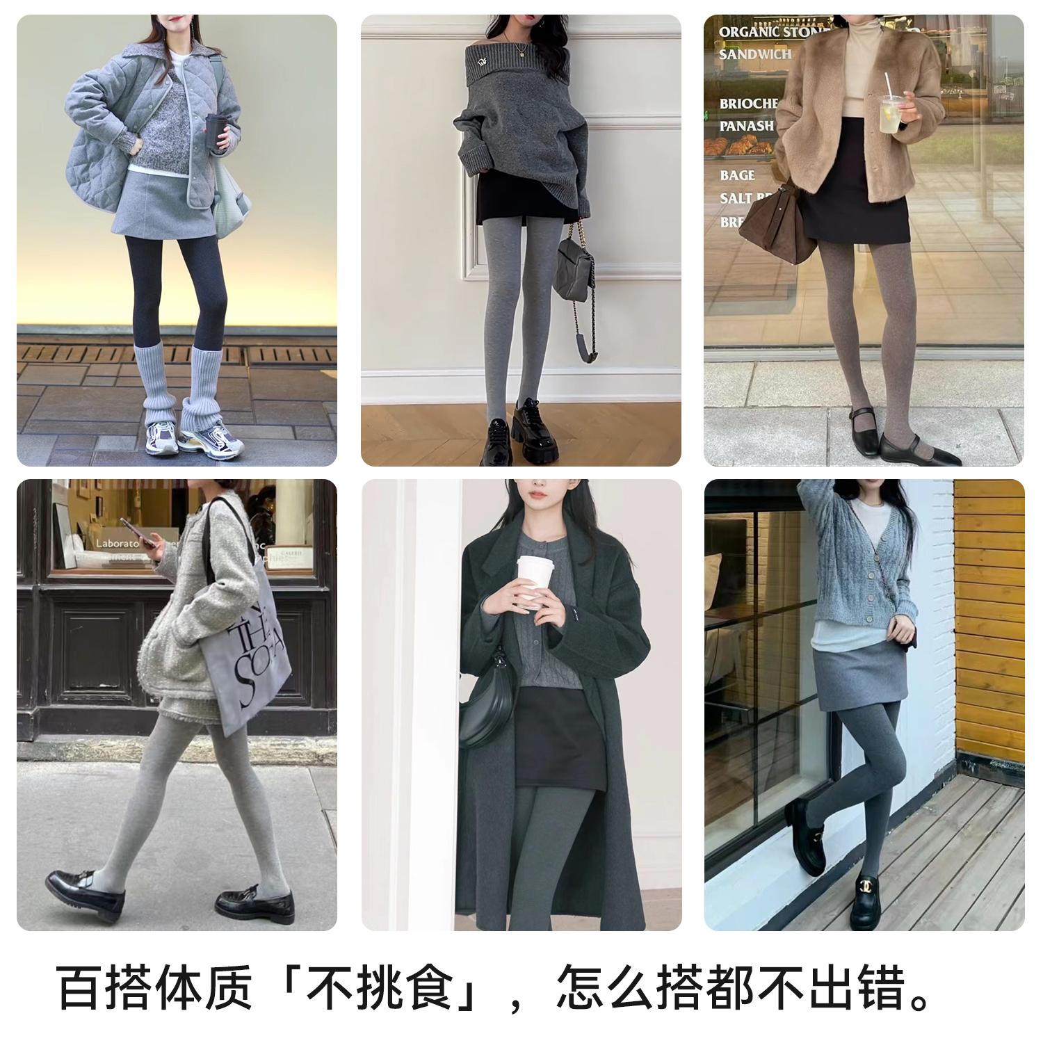 棉伙棉伴灰色连脚裤袜女秋冬外穿黑色踩脚显瘦格雷系提臀打底裤袜