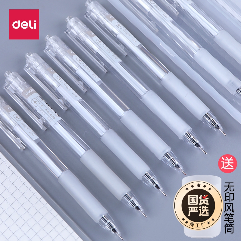 得力中性笔ins按动式0.38mm针管头黑色学生用专用简约按压圆珠笔的黑笔水笔款0.35高颜值0.38考试白色便宜