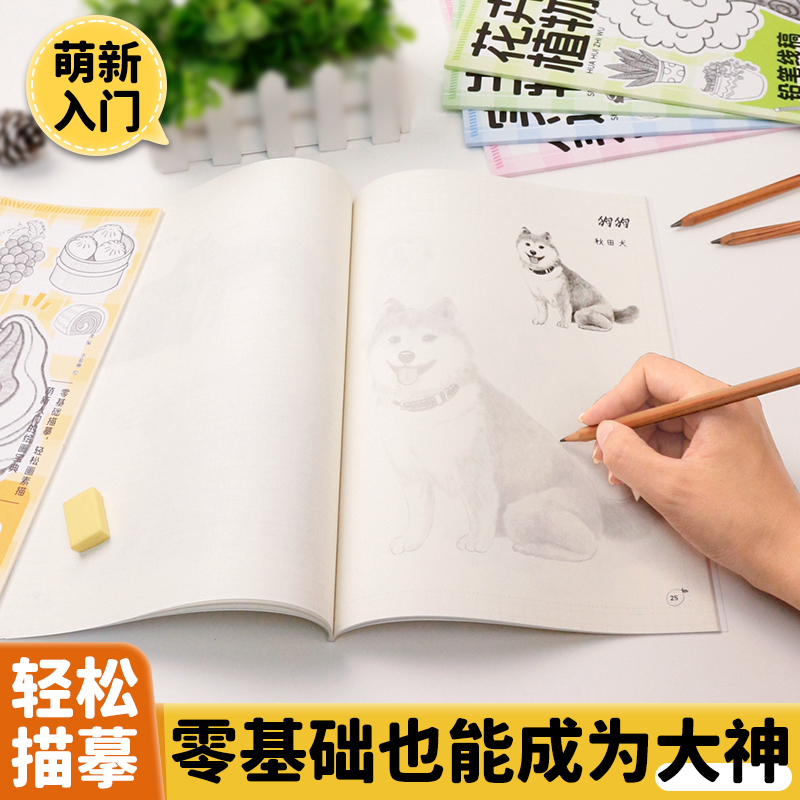 铅笔线稿描摹本 漫画人物手绘线描画画本元气美食零素描临摹画册入门自学零基础启蒙教材控笔训练涂色