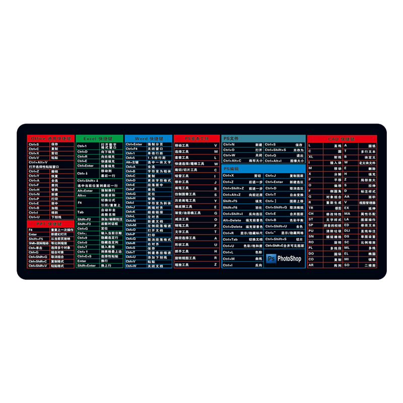 超大号鼠标垫办公电脑键盘垫书桌垫ps快捷键大全cad电竞护腕垫子