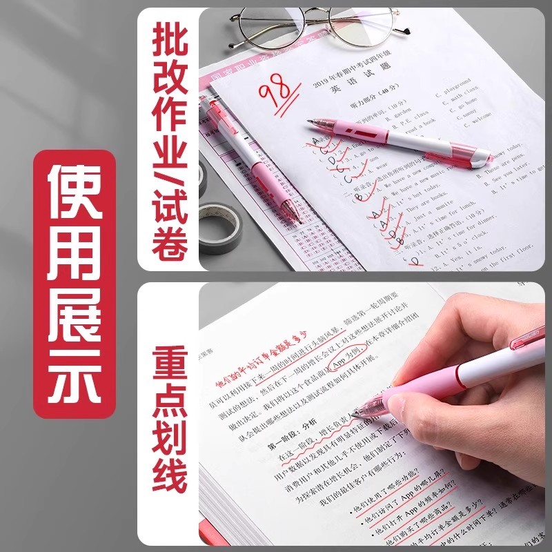 三年二班×点石红笔速干学生用红色中性笔老师专用粗头批改作业高颜值柔绘笔直液式刷题笔圆珠笔勃艮第红水笔
