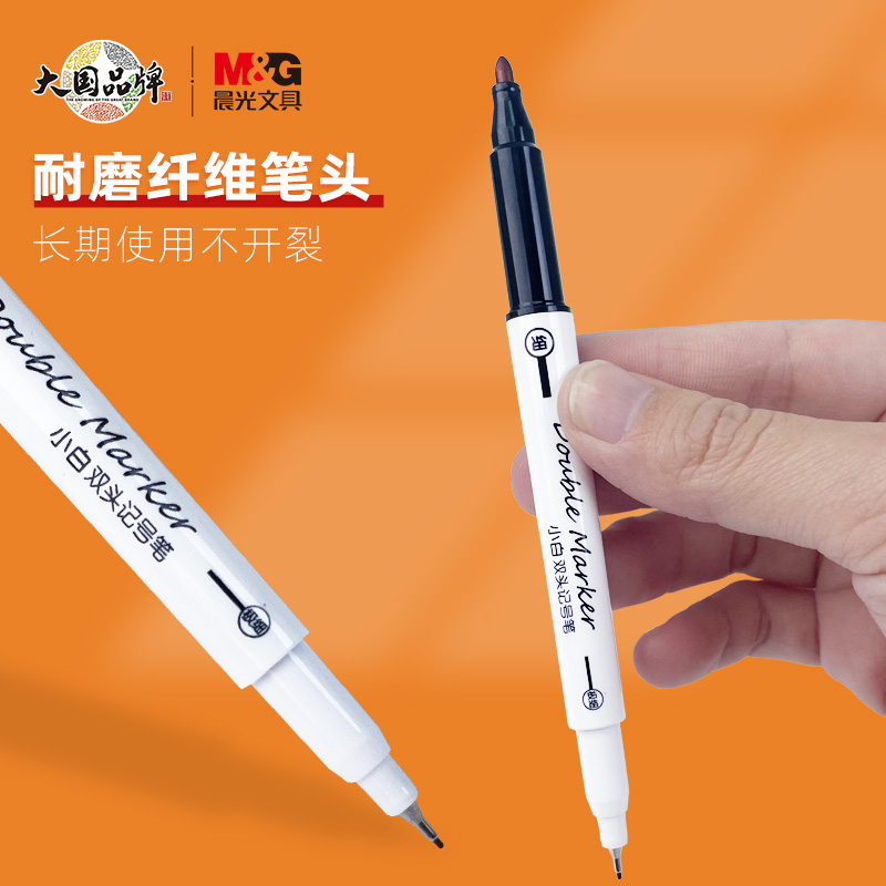 晨光马克儿童绘画幼儿园描边速干防水防油不掉色两头工地大头小双头记号笔勾线笔美术专用小学生黑色油性细头