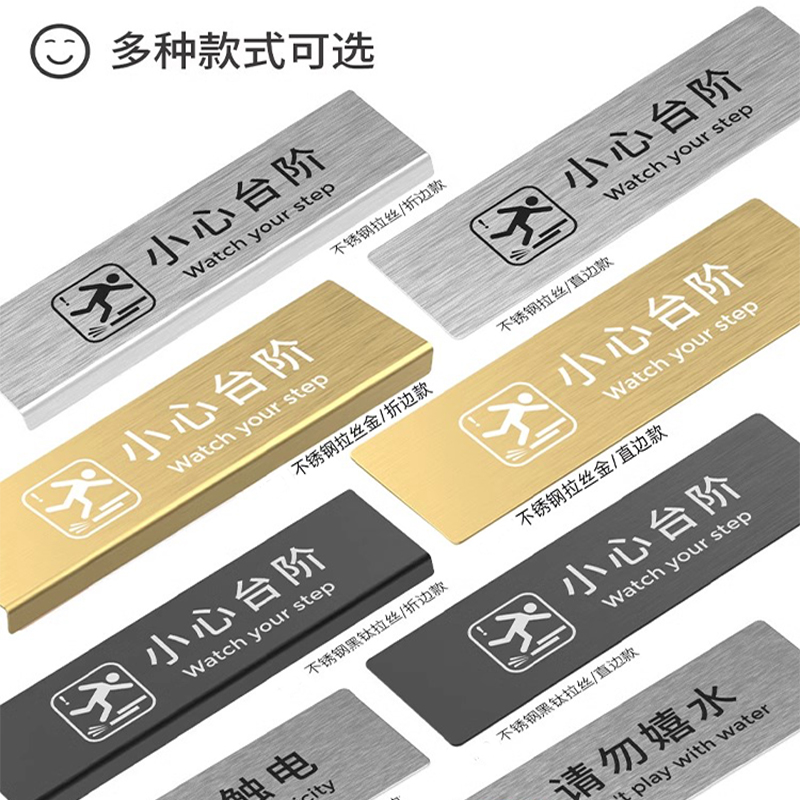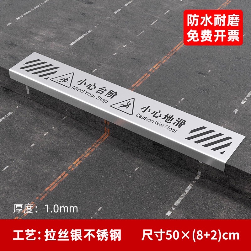 小心台阶地贴不锈钢提示牌小心地滑警示牌注意脚下安全酒店物业宾馆楼梯加长金属标识提示牌贴牌创意标志定制