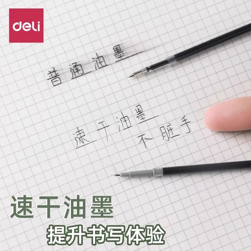 得力速干按动中性笔芯0.35mm全针管办公记账签字水笔芯财务会计专用做账登记中性笔黑芯极细水笔芯按压笔替芯