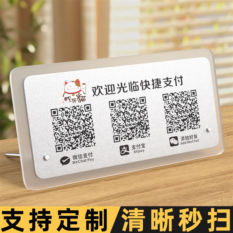 现货速发收付款二维码展示牌亚克力收款码摆台支付宝招财猫创意店