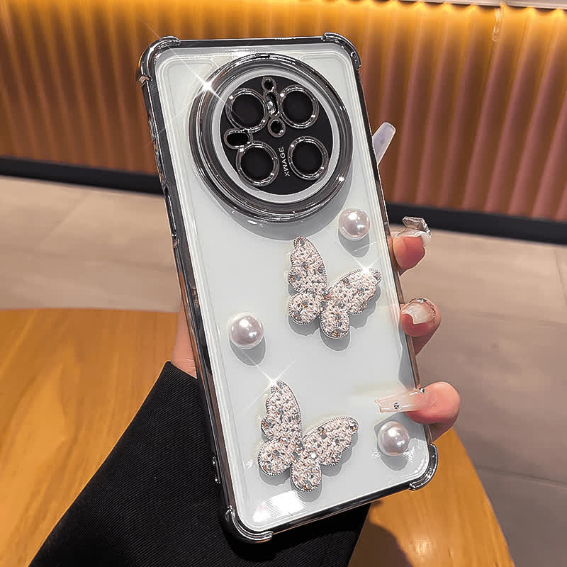 珍珠蝴蝶自带镜头膜气囊壳适用华为mate70手机壳新款高级感超薄全包防摔带手链保护壳mate70Pro闪钻透明外壳