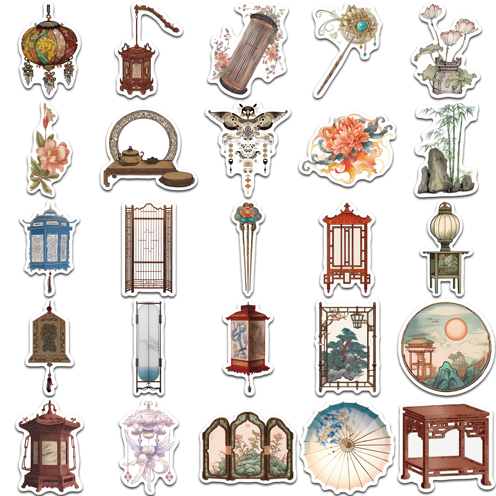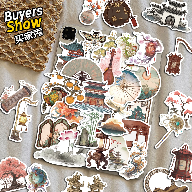 100张复古风小物怀旧贴纸中国古风建筑小物件装饰笔记本防水贴纸
