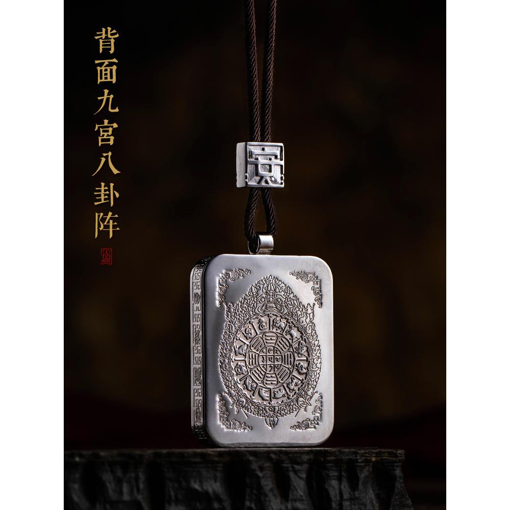 银镶嵌朱砂生肖本命佛牌吊坠男女九宫八卦牌项链挂件