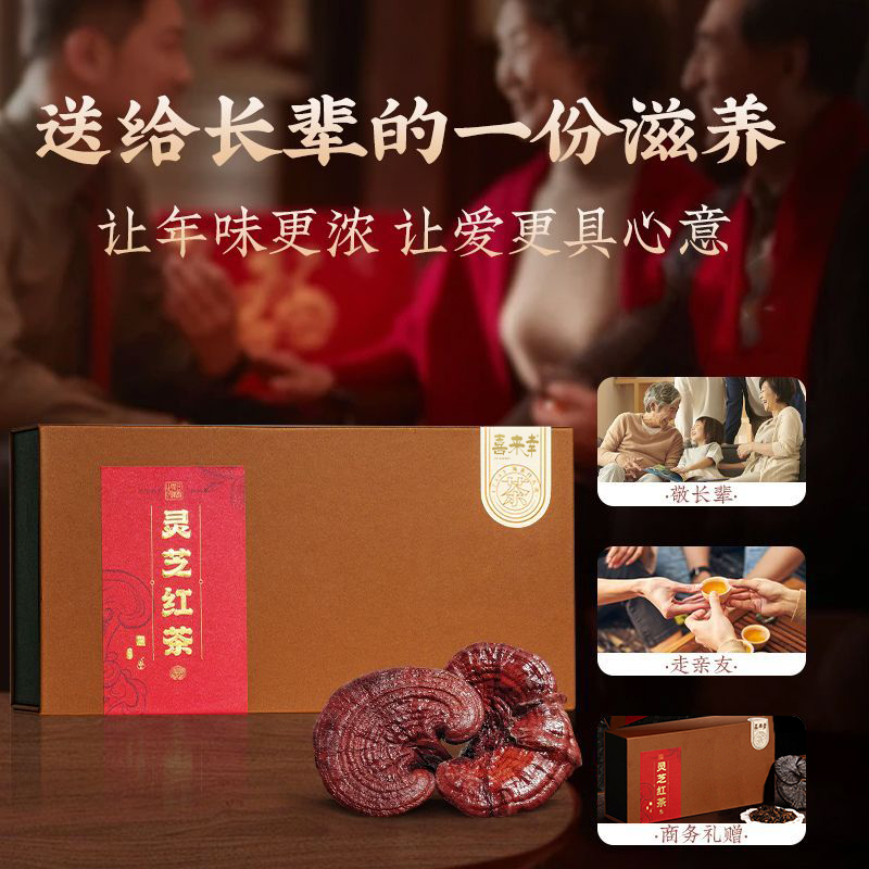 灵芝红茶自己喝养生茶送长辈茶叶盒装养生茶冲泡茶叶浓香型泡水