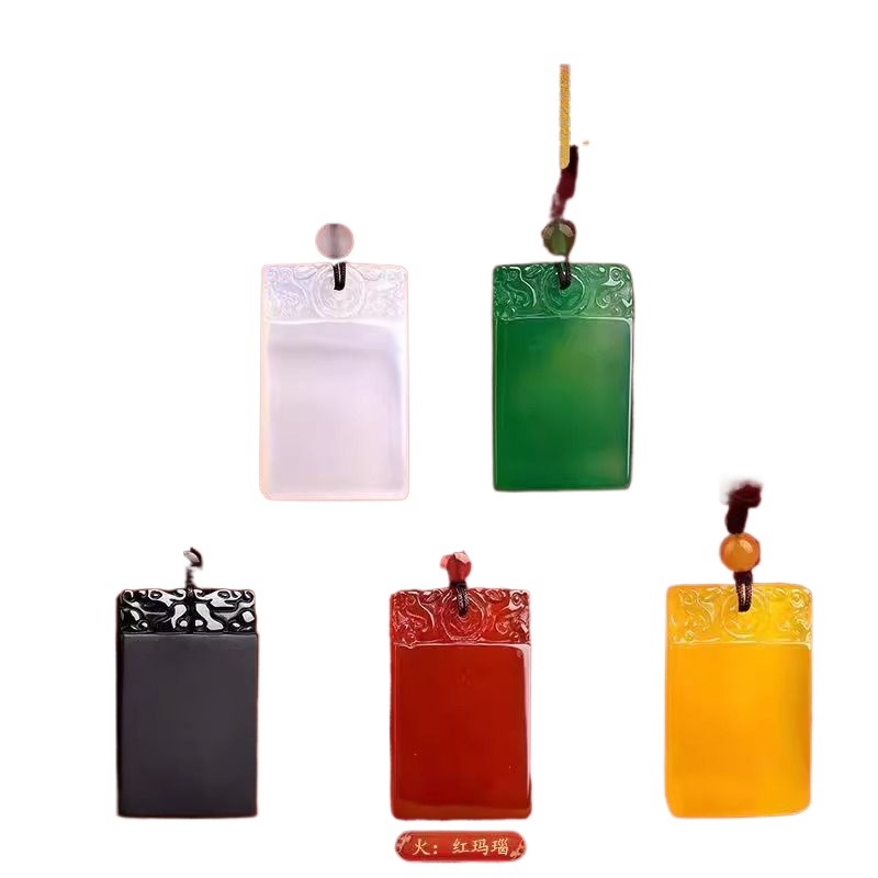 天然玛瑙玉髓无事牌吊坠玉石挂件玉佩玉坠项链平安牌黑曜石刻字