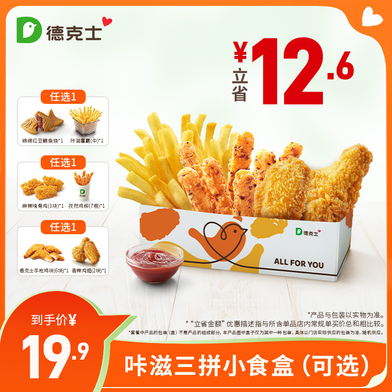 德克士【闪购下拉详情有惊喜】 咔滋三拼小食盒 单次券s