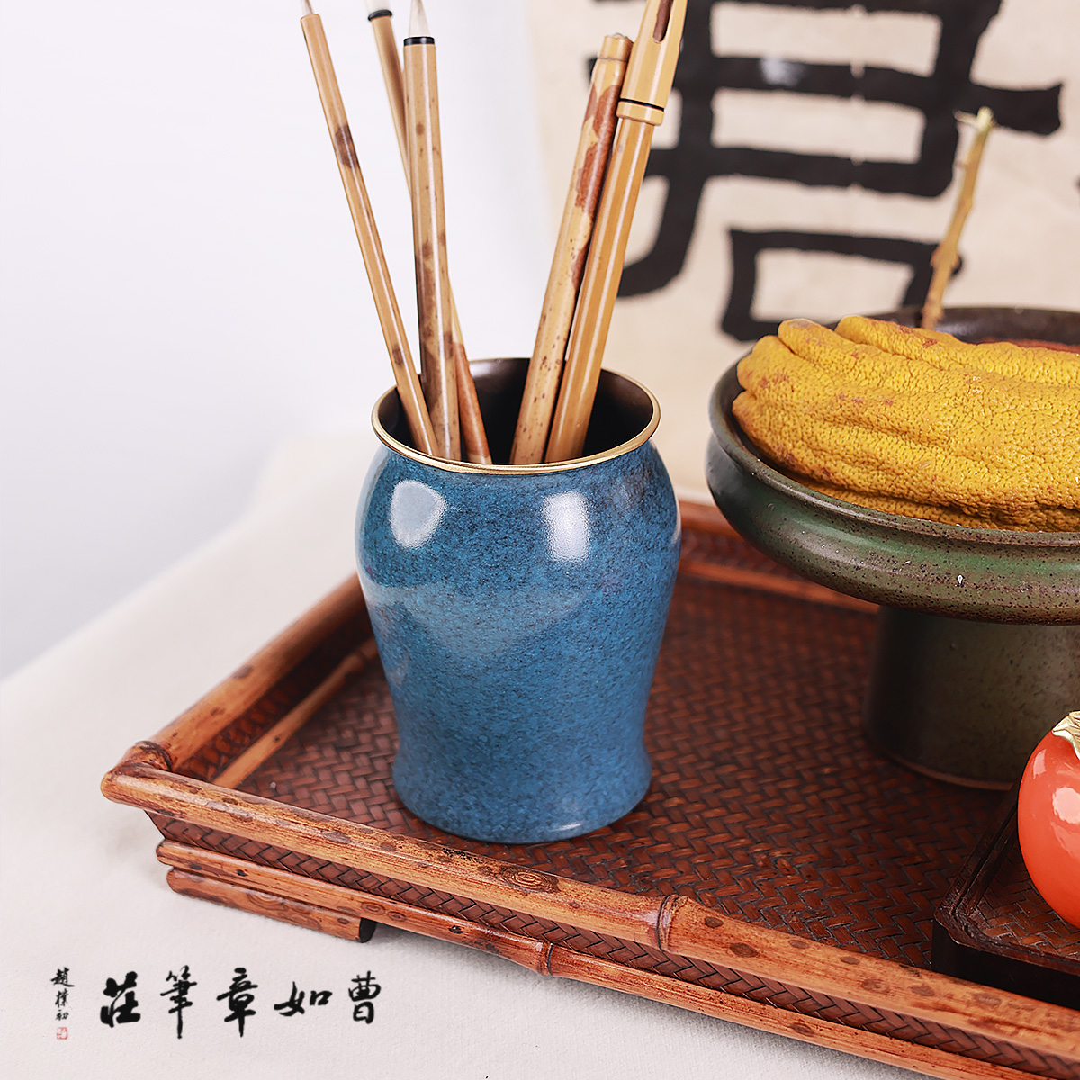 曹如章黄铜热着色金属笔筒高档精致文房四宝桌面摆件创意毛笔收纳