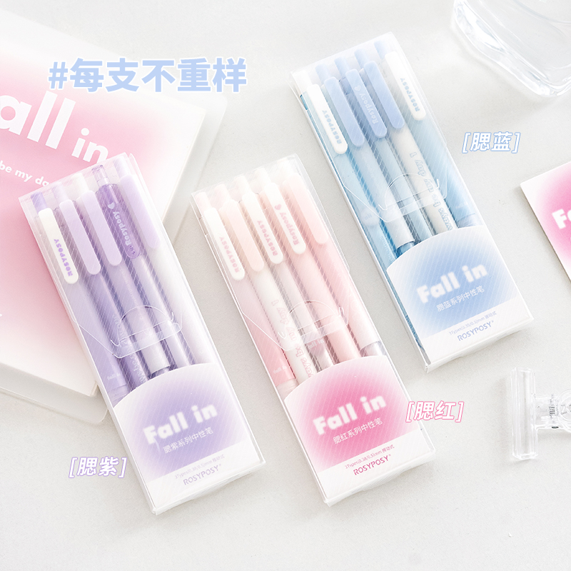 Planwith三色笔按动多色合一中性笔高颜值彩色学生做笔记专用标记笔多功能模块笔粉色红笔蓝笔错题订正记号笔