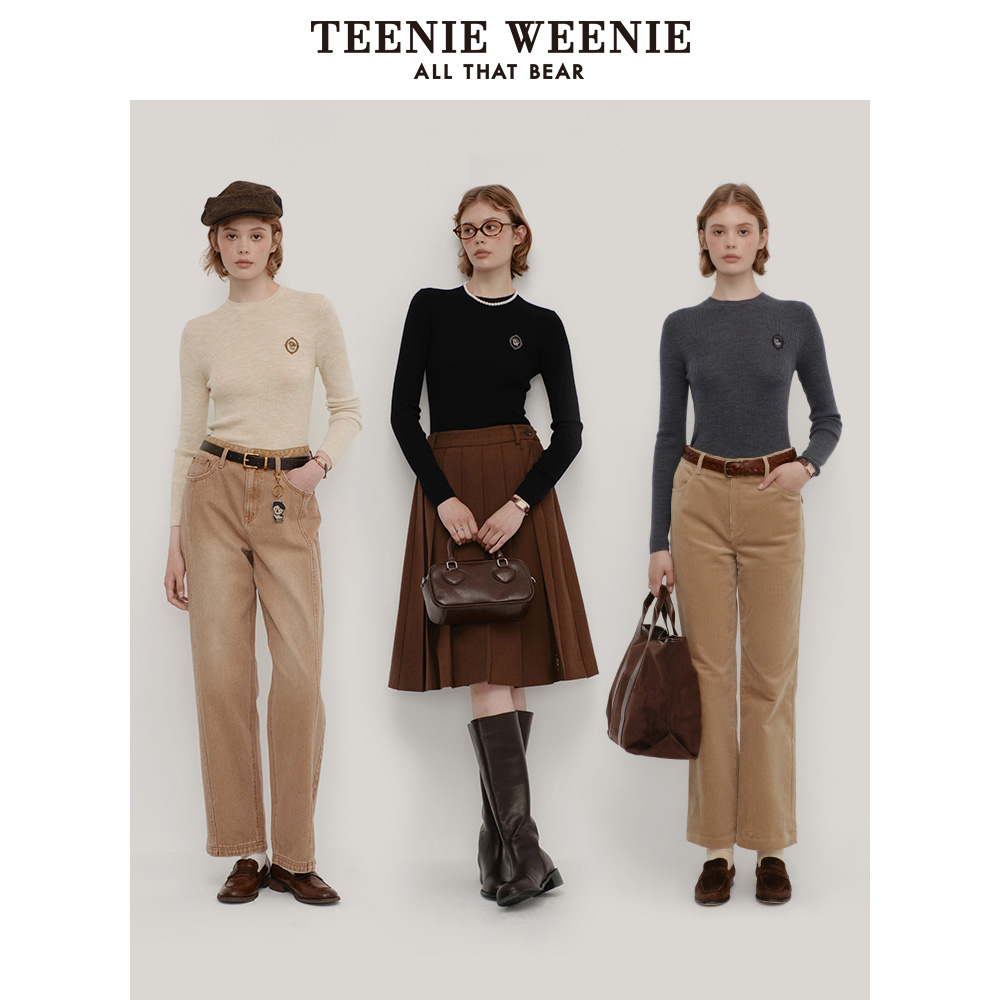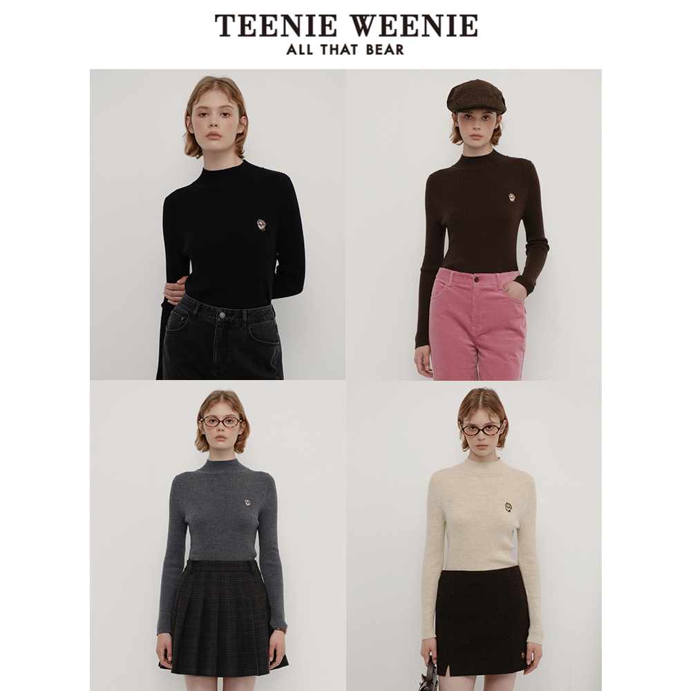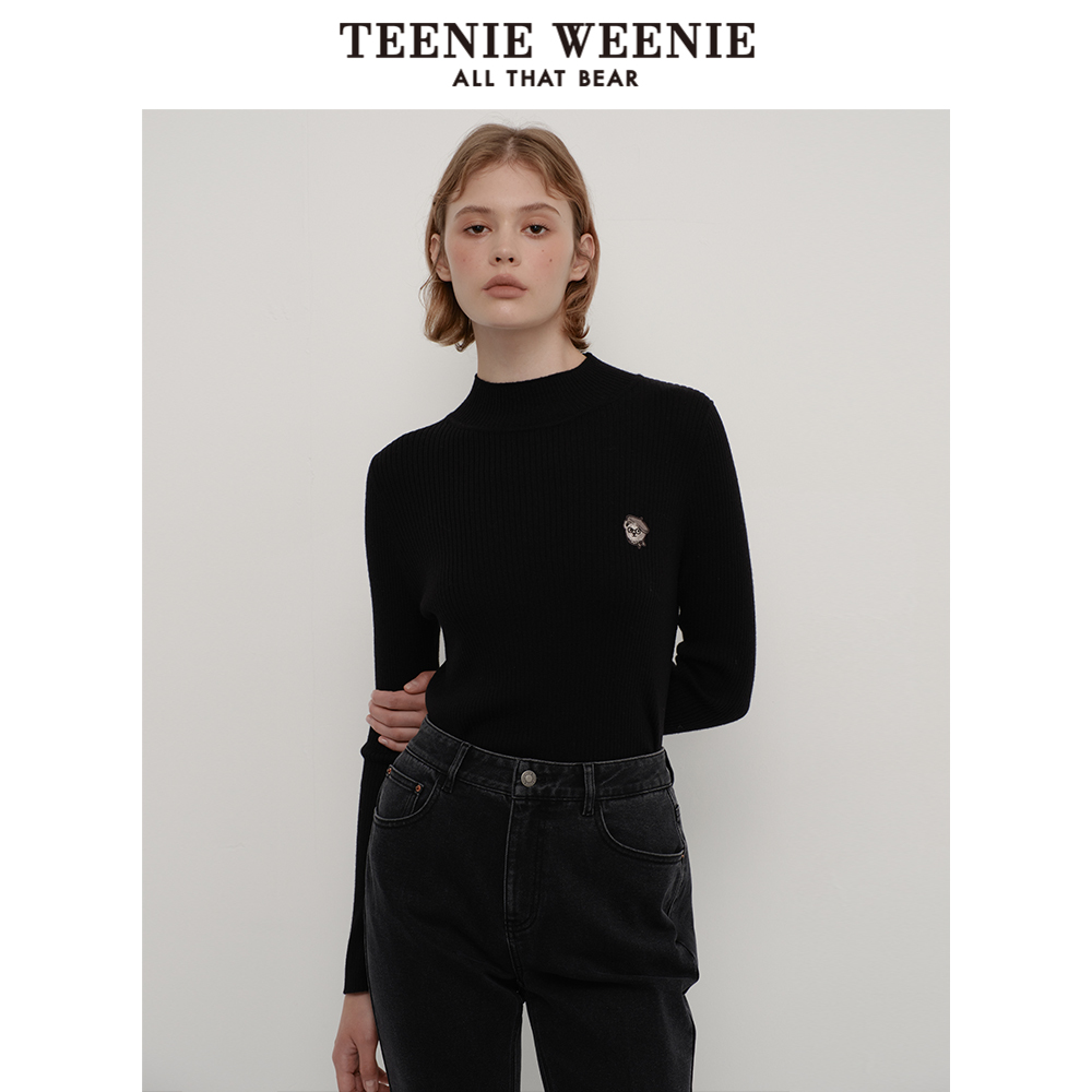 TeenieWeenie小熊女装毛衣秋季柔软舒适修身半高领针织刺绣打底衫