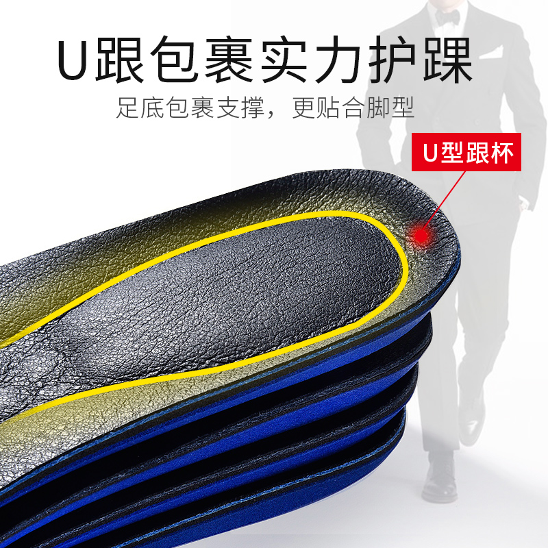 牛皮鞋垫男士吸汗防臭加厚运动减震防滑真皮鞋垫足弓支撑后跟按摩