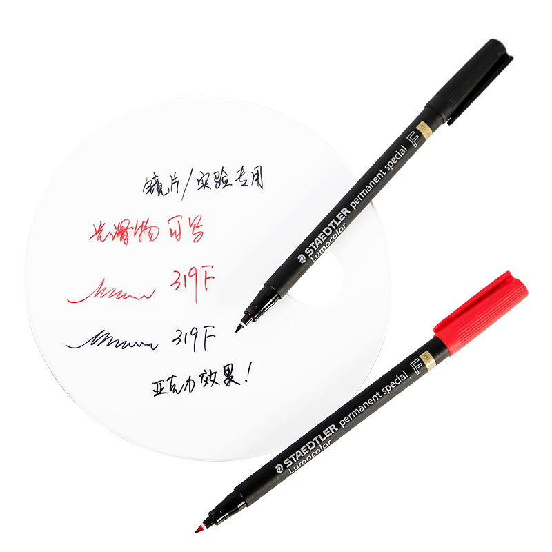 施德楼319F镜片记号笔油性笔菲林笔防水防油不掉色黑色红色玻璃光学纳米涂层眼镜片光滑物油性勾线笔标记笔