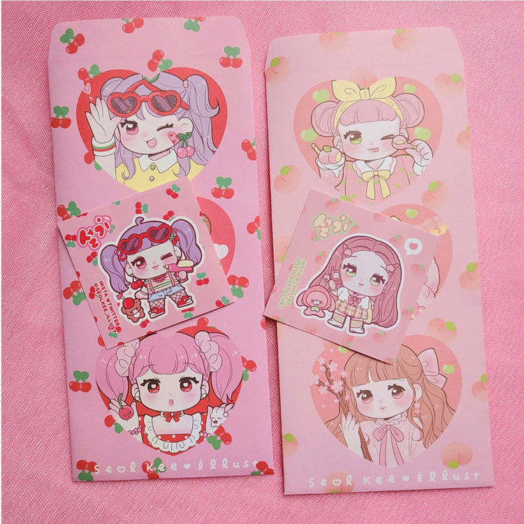 韩国Seolkee可爱生日礼金新年利是封卡通粉粉少女心信封10枚