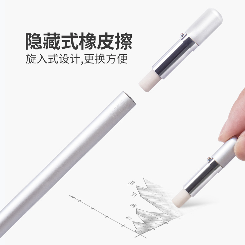 转笔者黑科技可擦永恒笔不用削免削的自动铅笔小学生一年级专用免费刻字铝合金喷砂金属隐藏橡皮擦文具盒包装