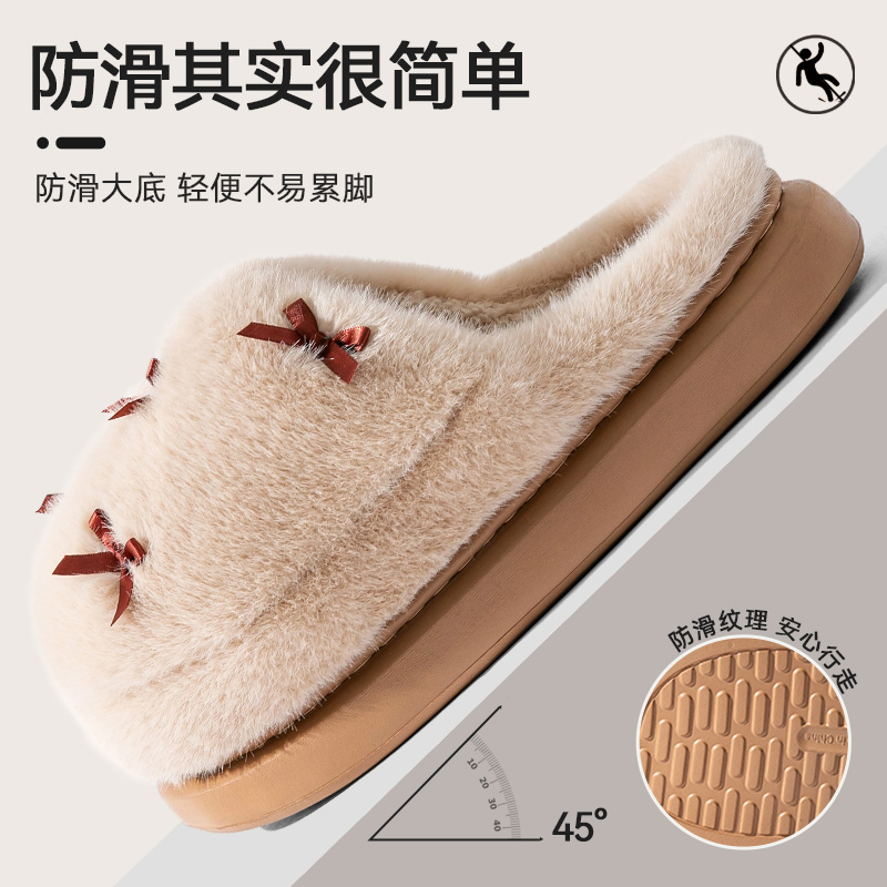 毛绒棉拖鞋女士2025新款冬季家居室内加绒加厚防滑保暖包头居家