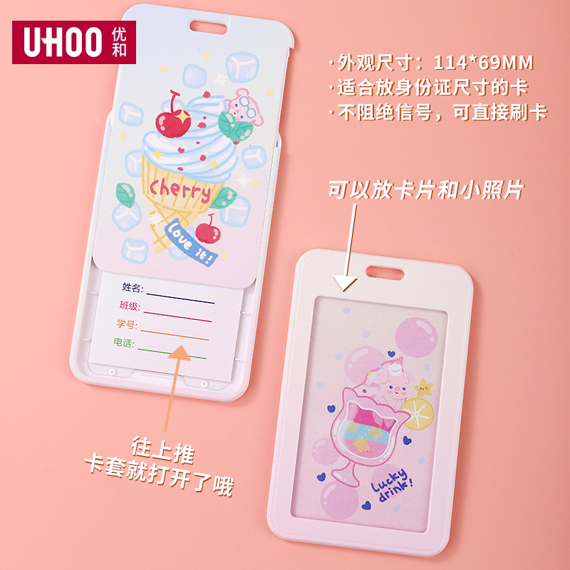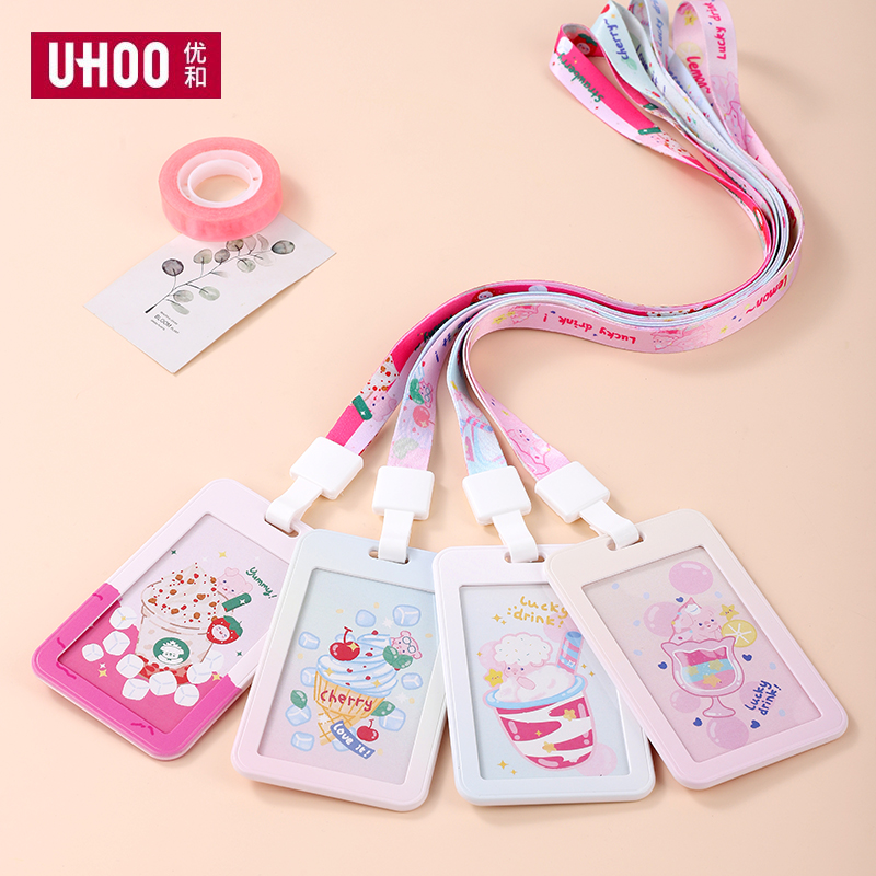 UHOO优和文创小中大学生卡套可爱带挂绳耐用吊牌校园胸牌工牌工作证件套校牌饭卡透明卡通公交卡门禁卡保护套