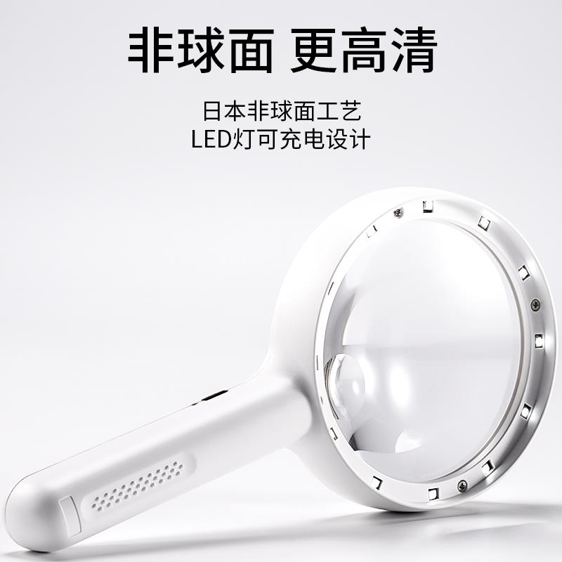 日本超轻型30倍带LED灯放大镜可充电 高清高倍老人阅读看书儿童学生手持式特大号扩大镜1000 非球面型