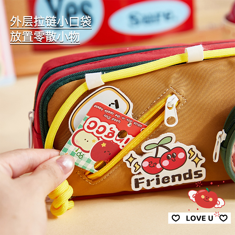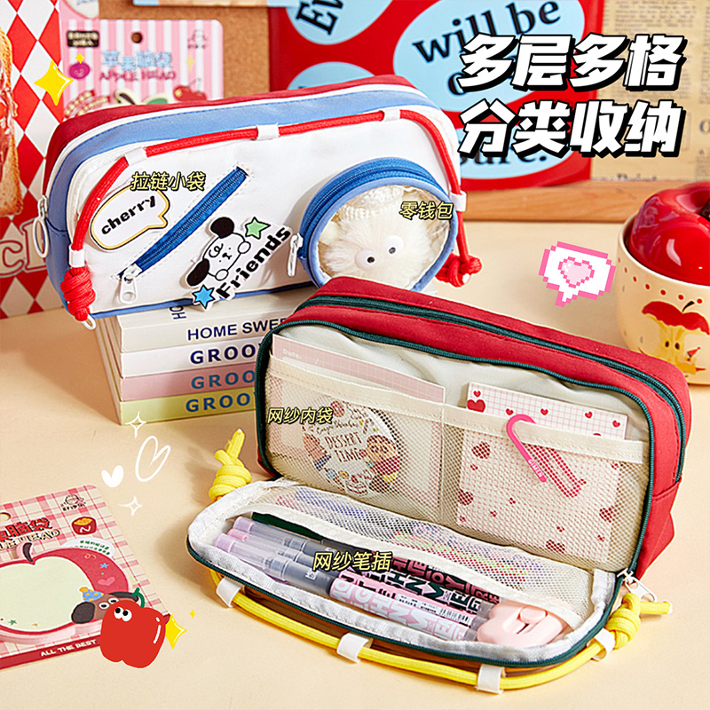 2025可爱食物撞色笔袋新款高颜值ins风超大容量文具袋痛包铅笔盒帆布袋中小学生通用文具笔袋多功能分类收纳