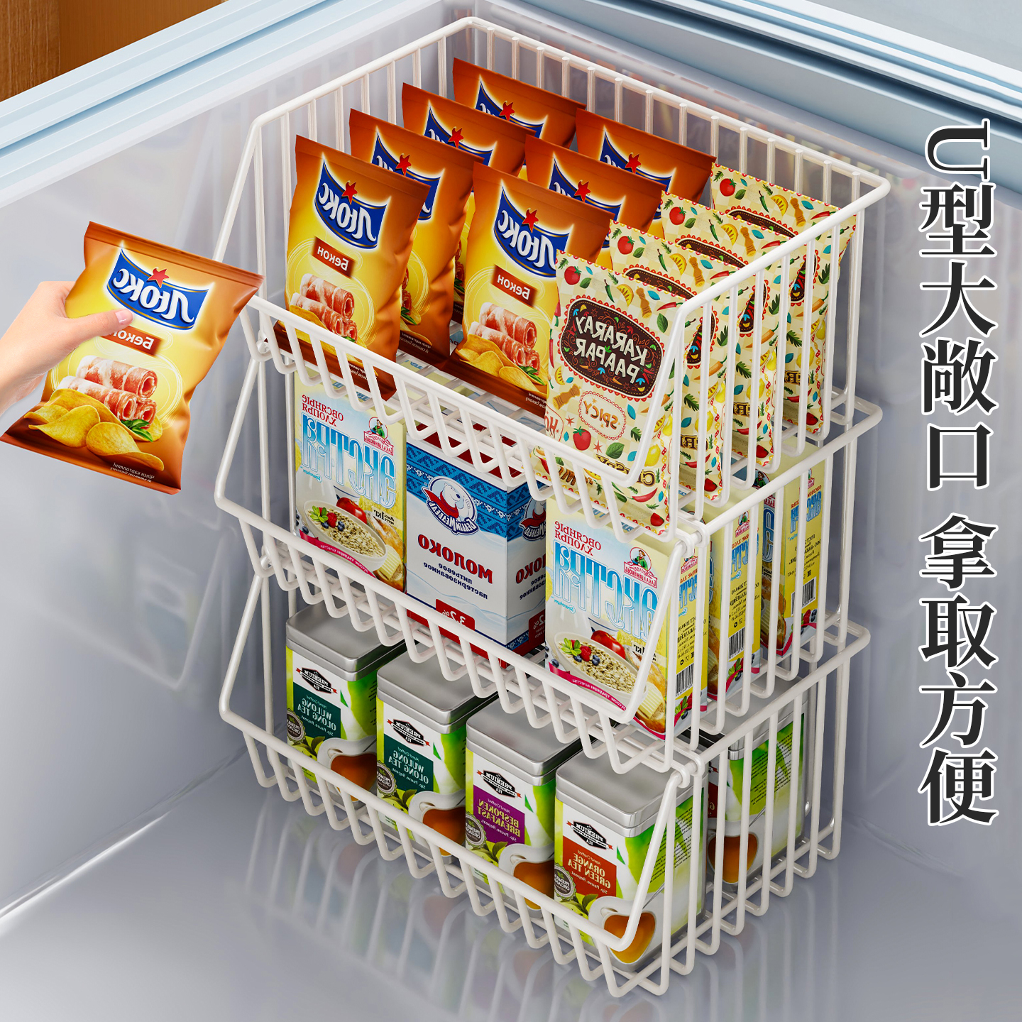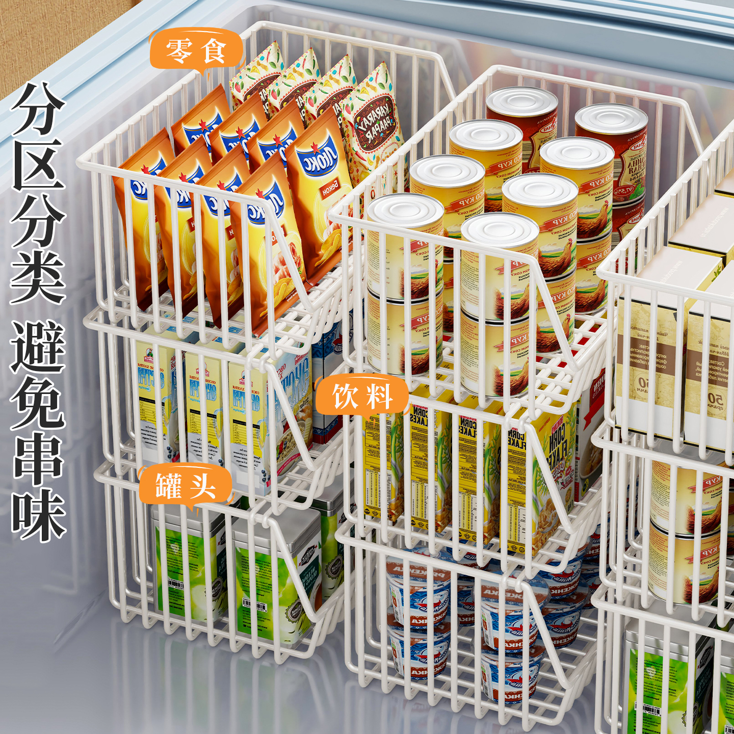 多功能冰柜收纳篮可叠加隔层架吊篮食品收纳架冰箱多层分隔框神器