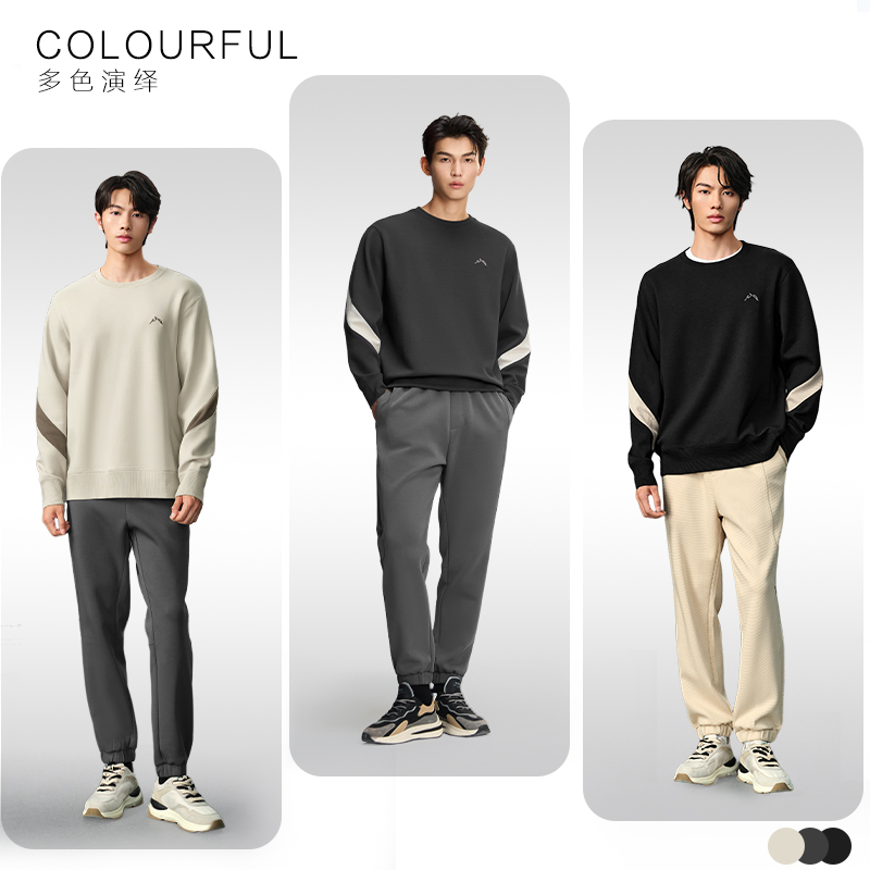 【秀场同款】HLA/海澜之家山不在高春秋季新镶拼宽松休闲卫衣男装