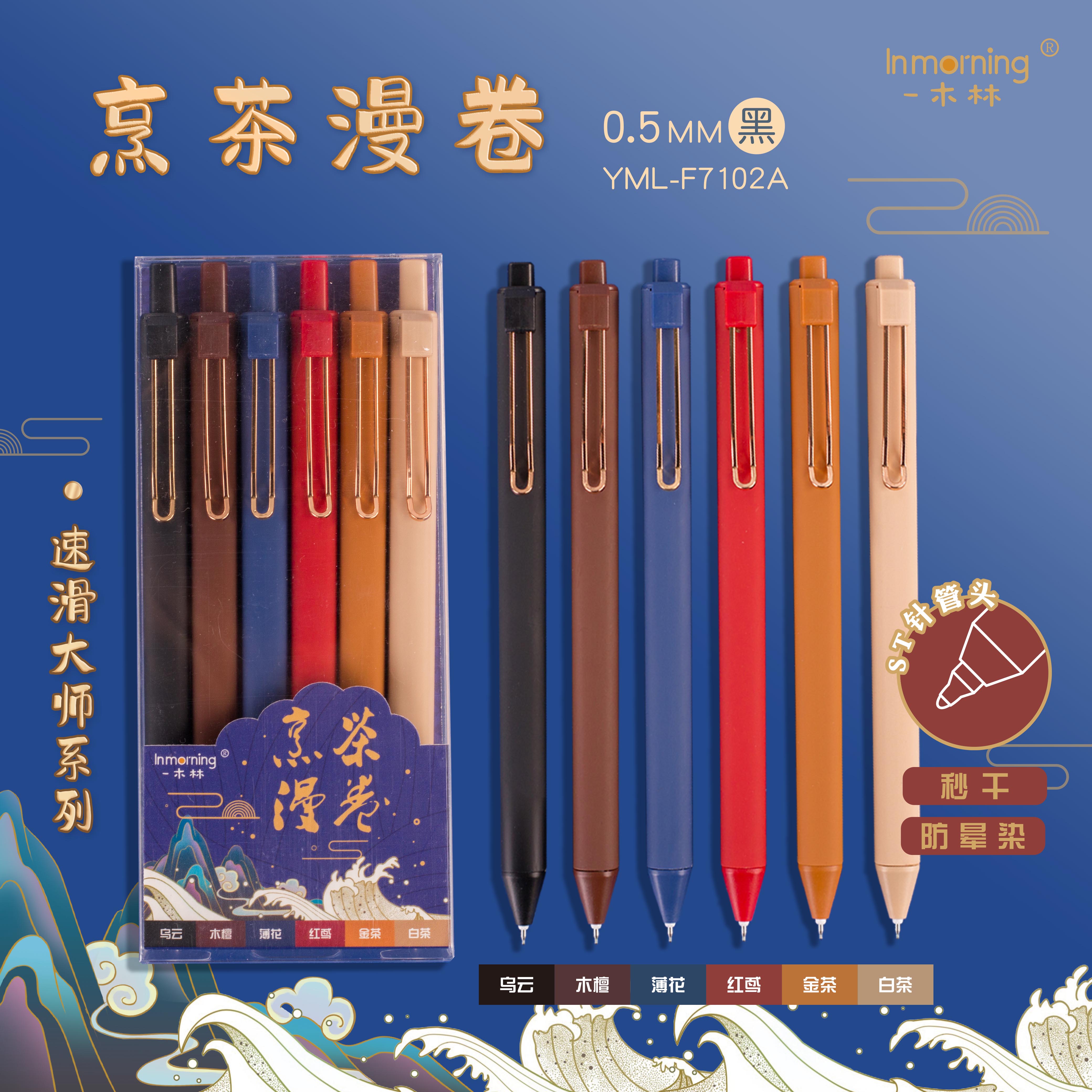 一木林中国风方杆按动中性笔莫兰迪色按压式刷题笔st笔尖速干顺滑高颜值国潮风学生考试0.5黑笔芯圆珠笔签字