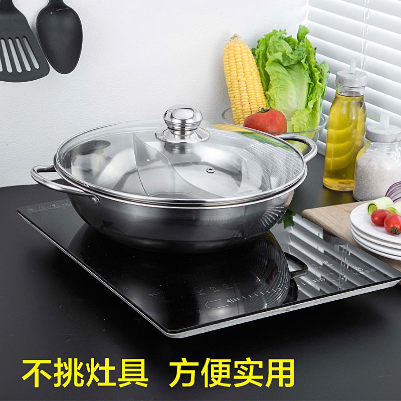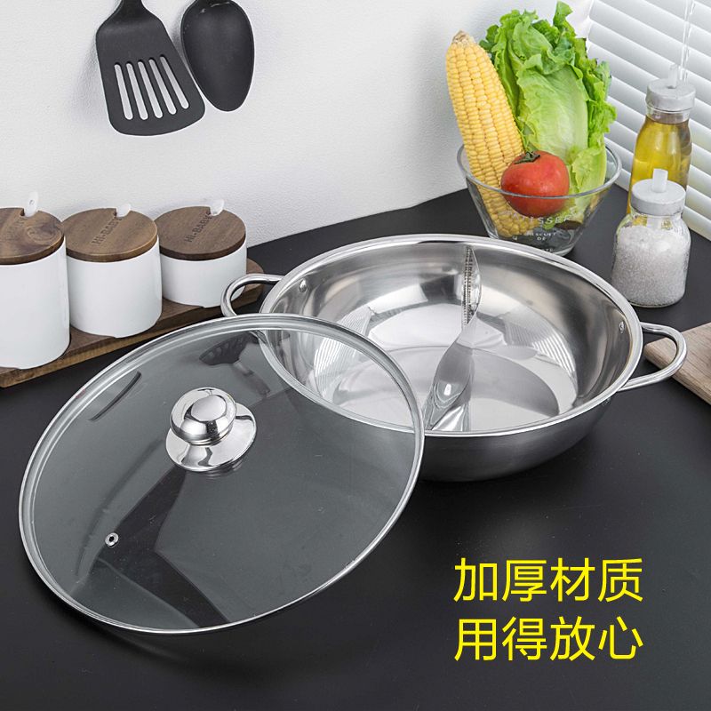 加厚鸳鸯锅电磁炉专用火锅盆家用不锈钢火锅锅明火汤锅不串味带盖