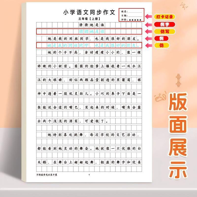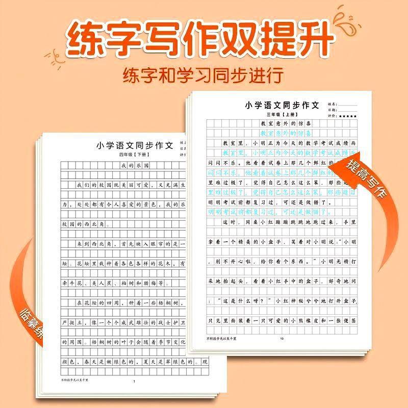 同步作文抄写纸小学生专用三四五六年级方格语文临摹优美句子模板