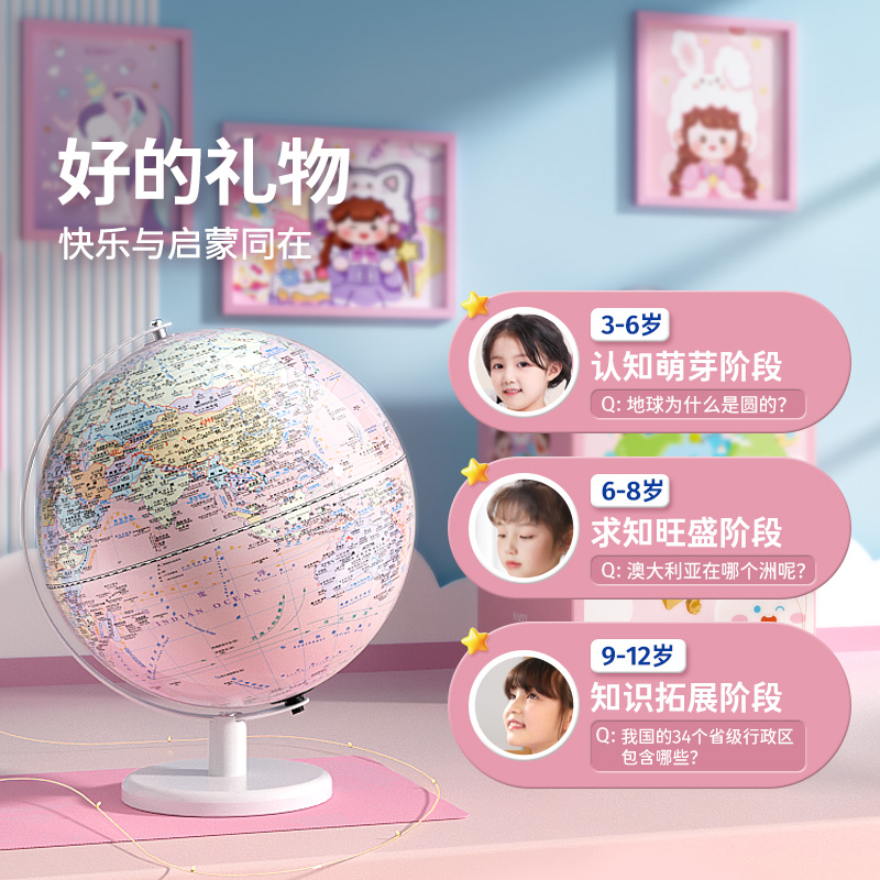 恩米地球仪3d立体悬浮ar发光小夜灯摆件六一儿童节礼品启蒙智能世界地图正版模型学生创意男女孩生日礼物礼盒