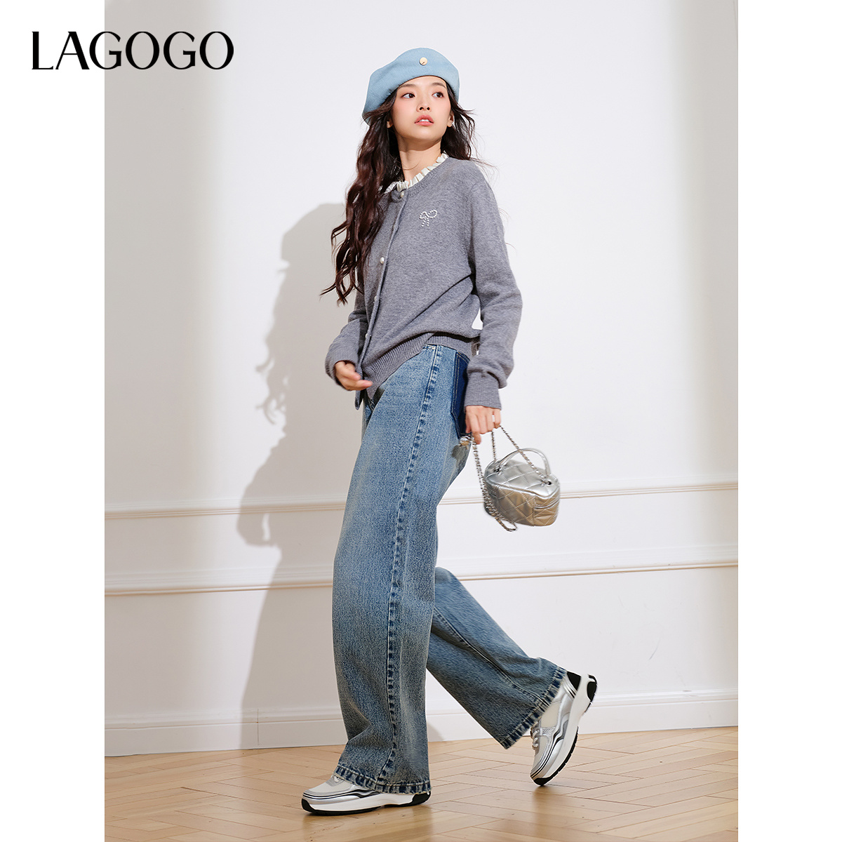 lagogo拉谷谷2024年新款木耳边温柔通勤舒适针织衫女NCMM817G26