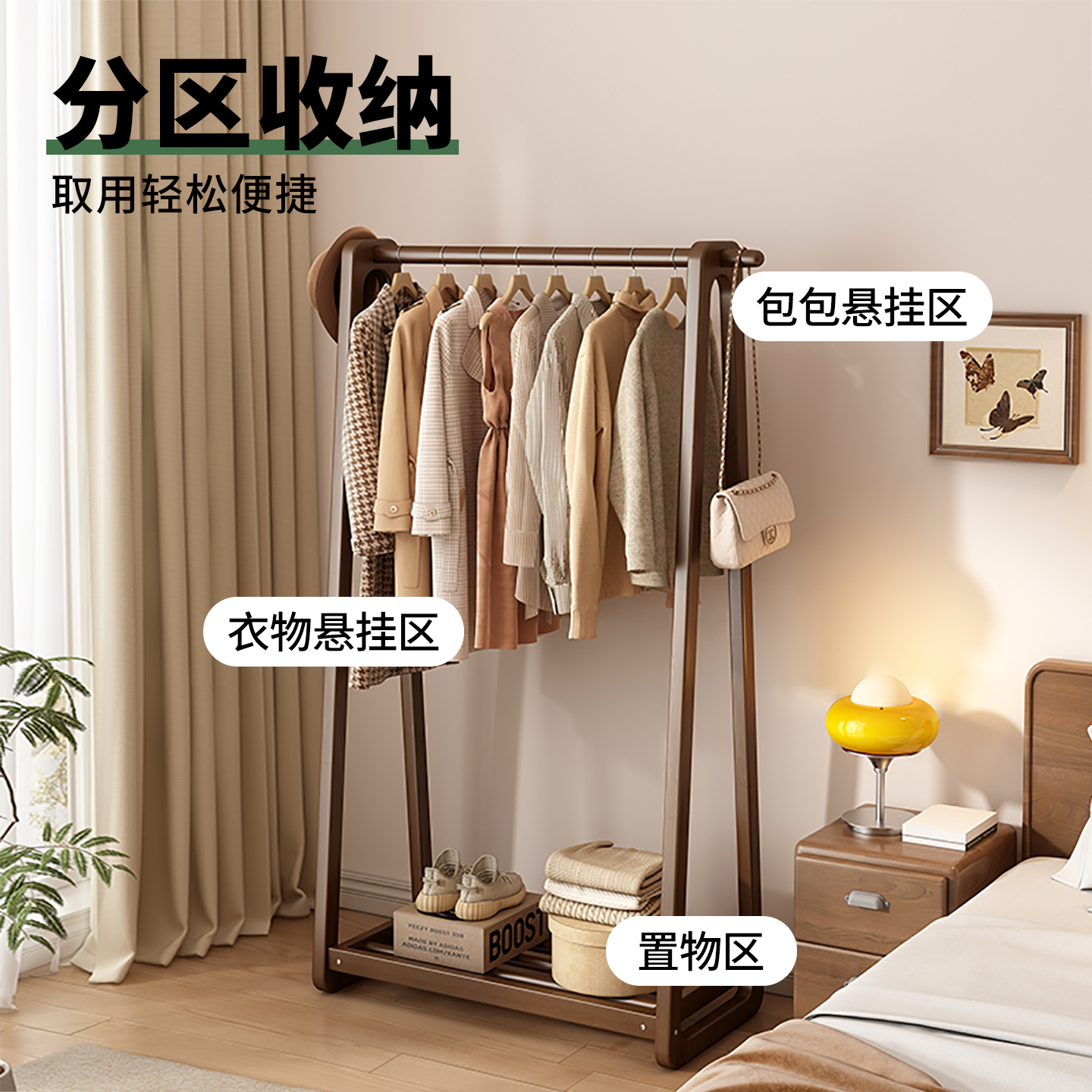 实木衣架落地衣帽架卧室家用挂衣架简易立式榉木挂衣杆室内挂包架