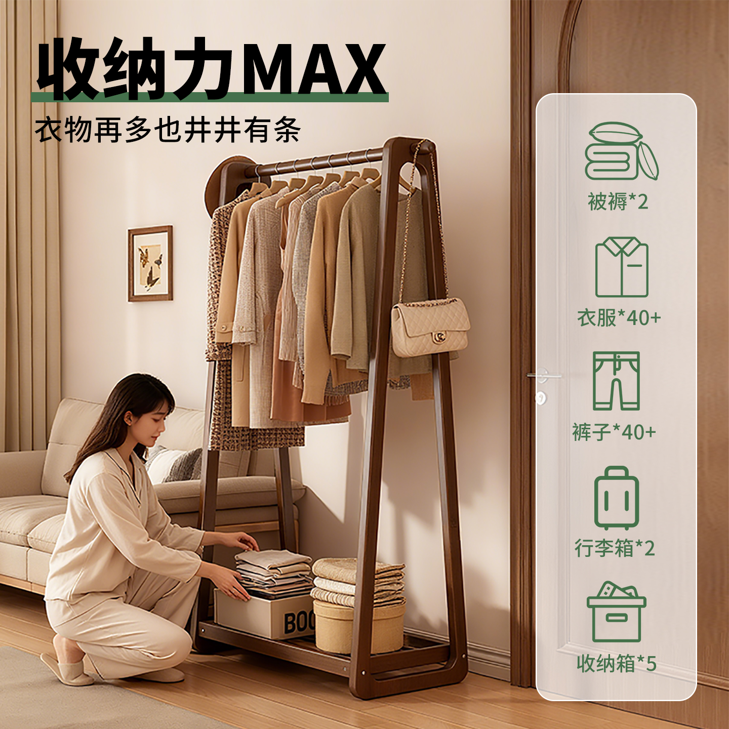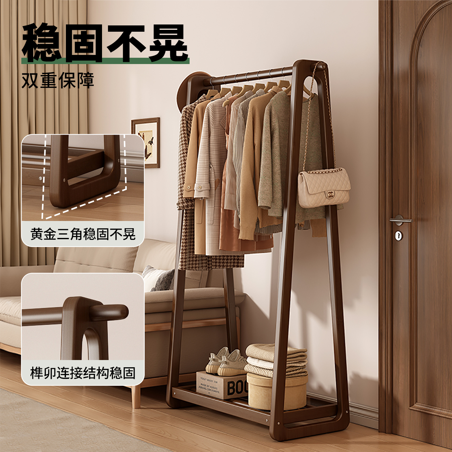 家逸落地衣架实木挂衣架木质卧室家用落地式衣帽架榉木晾衣服架子