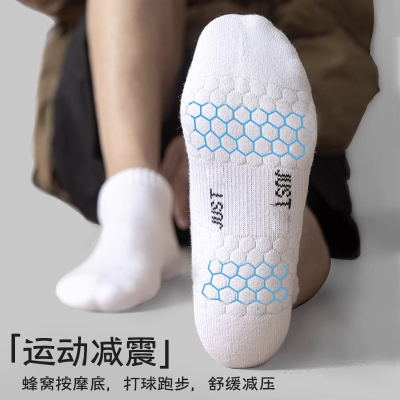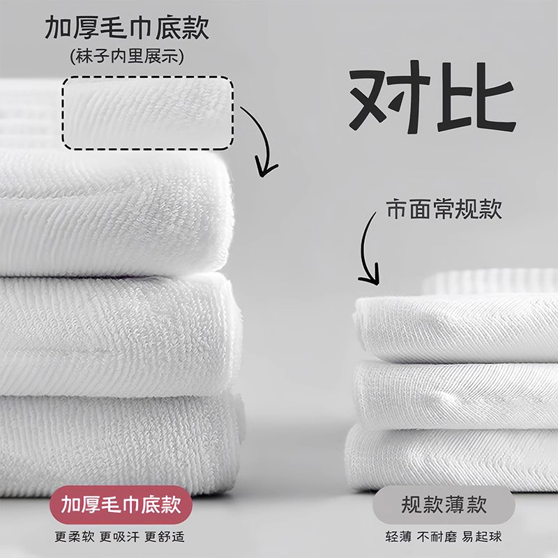 袜子男秋冬款男士毛巾底运动中筒白色加厚篮球棉袜长筒袜防臭防滑