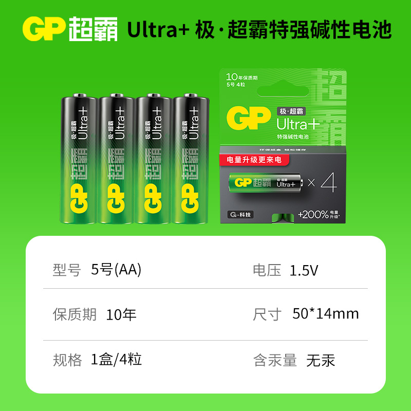 GP超霸5号智能门锁电池指纹锁密码锁专用电池五号AA酒店玩具鼠标ktv麦克风血压计燃气表闪光灯碱性电池 4粒装