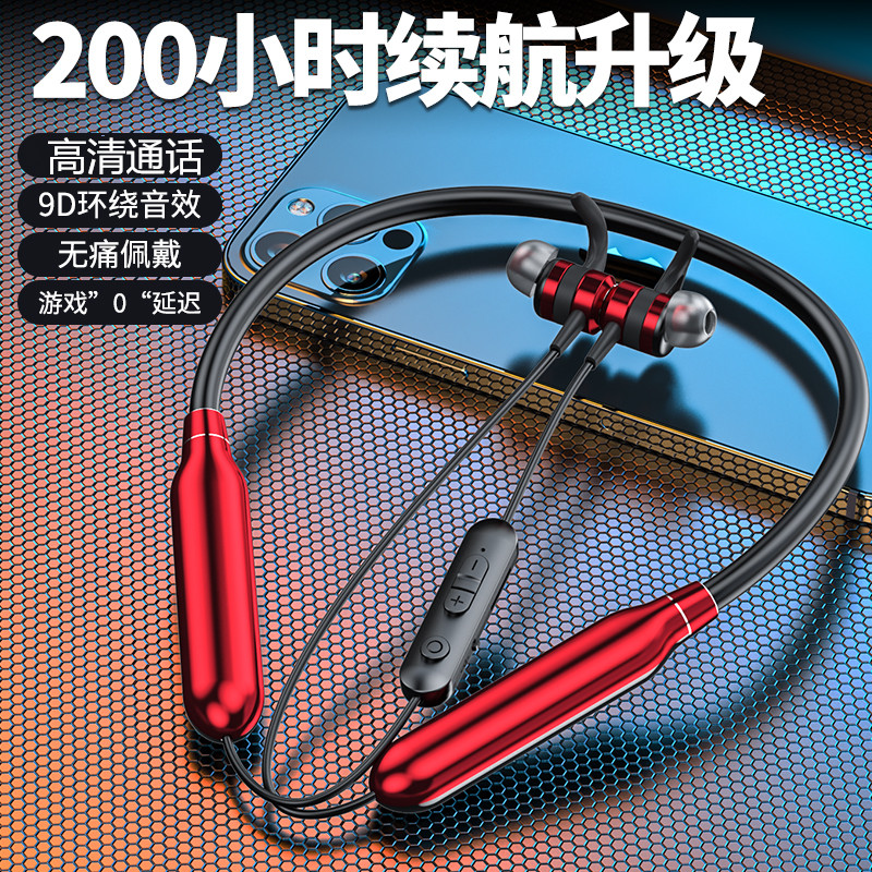 新款无线蓝牙耳机挂脖式超长续航运动跑步磁吸颈挂式大电量重低音