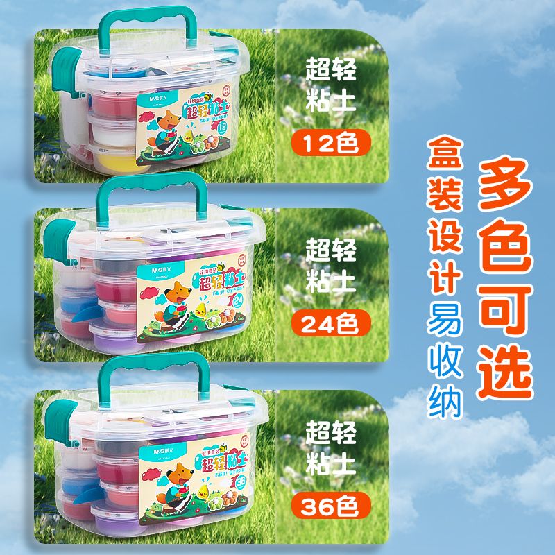 晨光超轻粘土36色橡皮泥24色正品彩泥儿童带模具工具套装超清黏土胶泥太空泥轻质油泥幼儿园手工软陶泥12色
