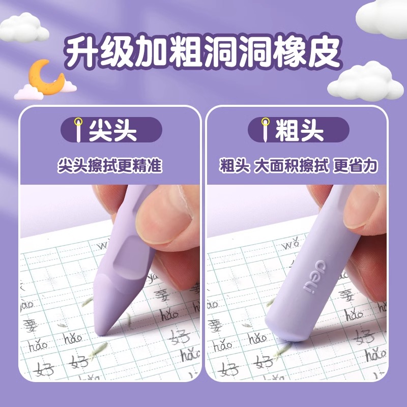 得力洞洞橡皮擦小学生专用无屑超干净矫正握姿儿童幼儿园擦得干净无毒创意象皮像皮擦少屑文具