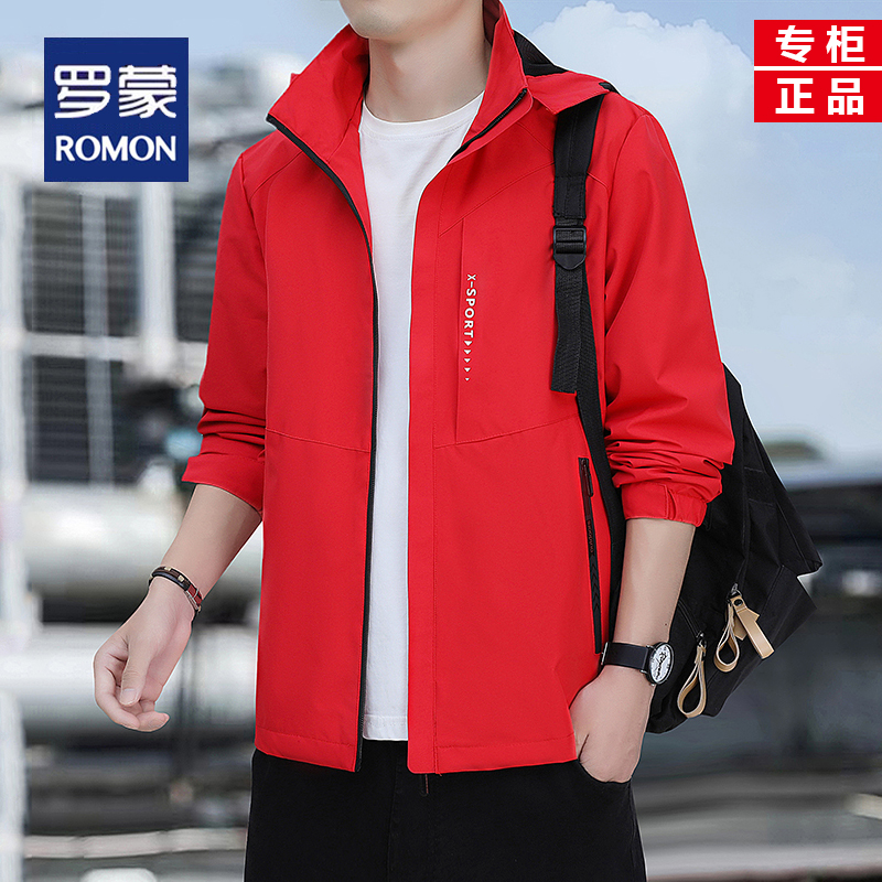 罗蒙夹克外套男士秋冬新款大码户外登山服休闲可拆卸帽冲锋衣男装