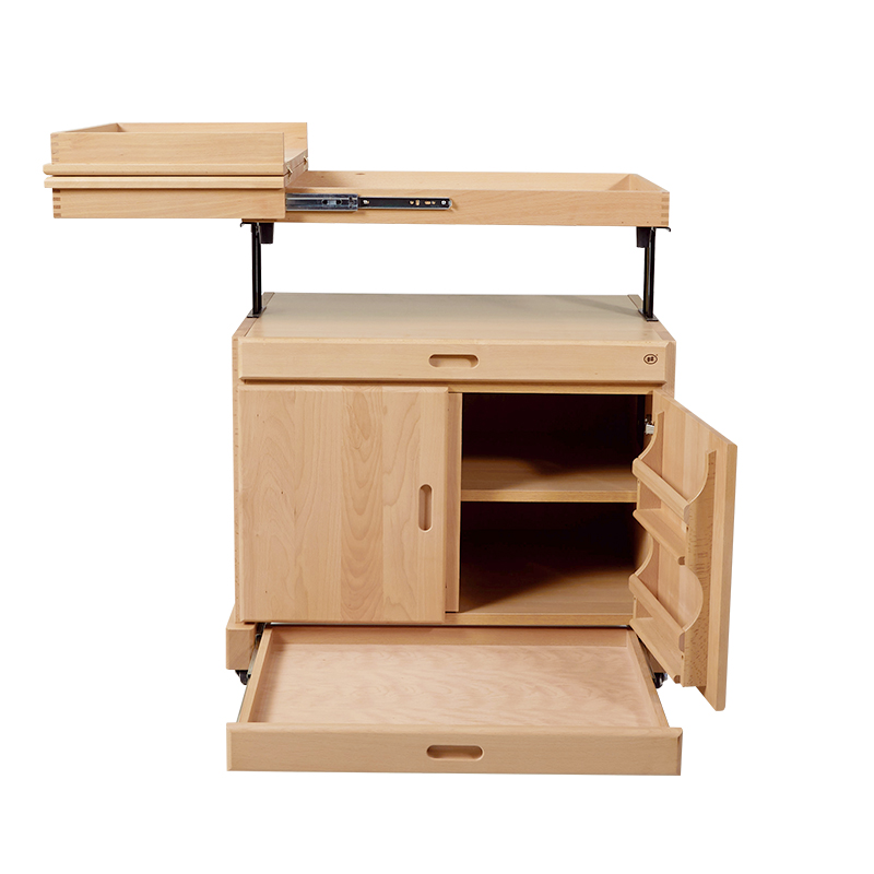 丰丰 榉木升降画柜 多功能实木油画国画画车画柜储藏柜工具绘画调色架颜料车画框画箱画板画架榉木移动画柜