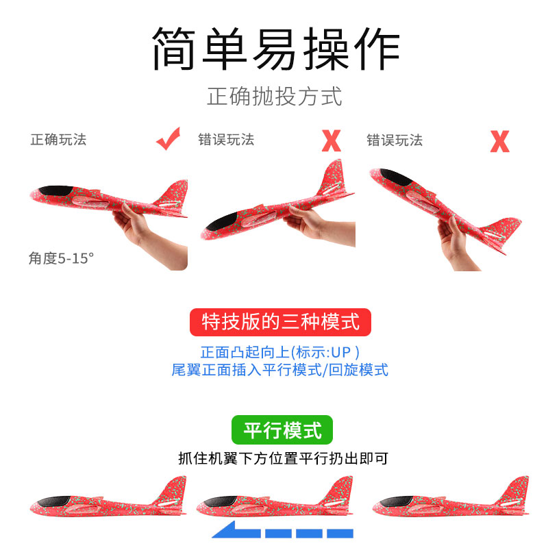 大号手抛飞机玩具发光户外飞机儿童回旋滑翔泡沫飞机模型手工自由