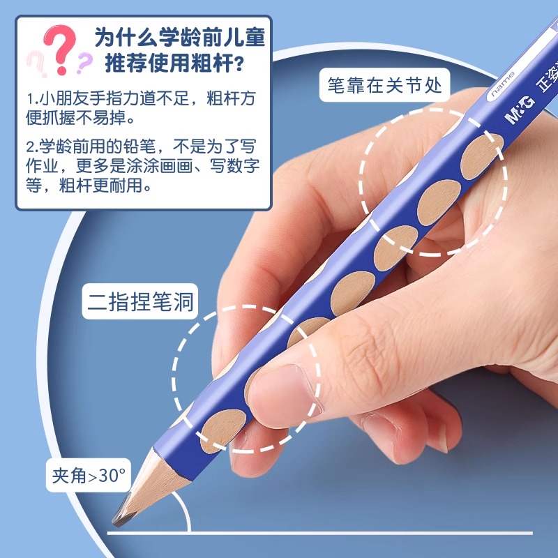 晨光特粗洞洞铅笔幼儿园初学者安全大三角杆幼儿专用铅笔小学生专用一年级握笔器hb正姿铅笔2b铅笔文具用品