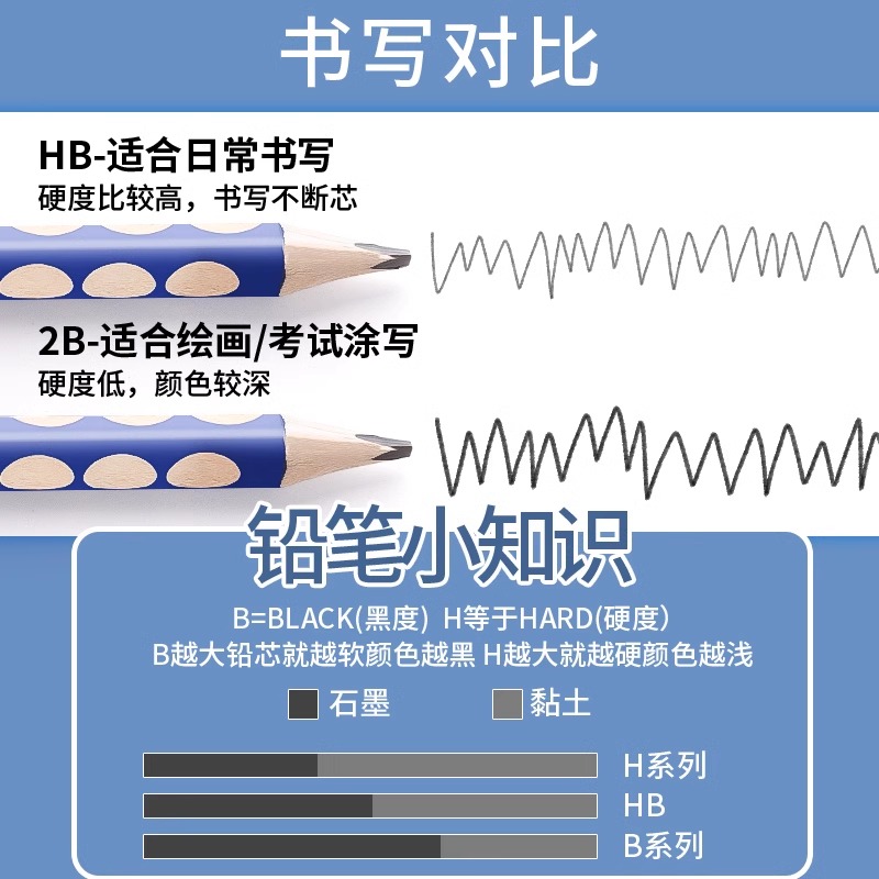 黑木铅笔三角正姿铅笔HB小学生专用一二年级学生铅笔2B幼儿园儿童初学练字学习文具无毒考试笔素描笔绘画笔