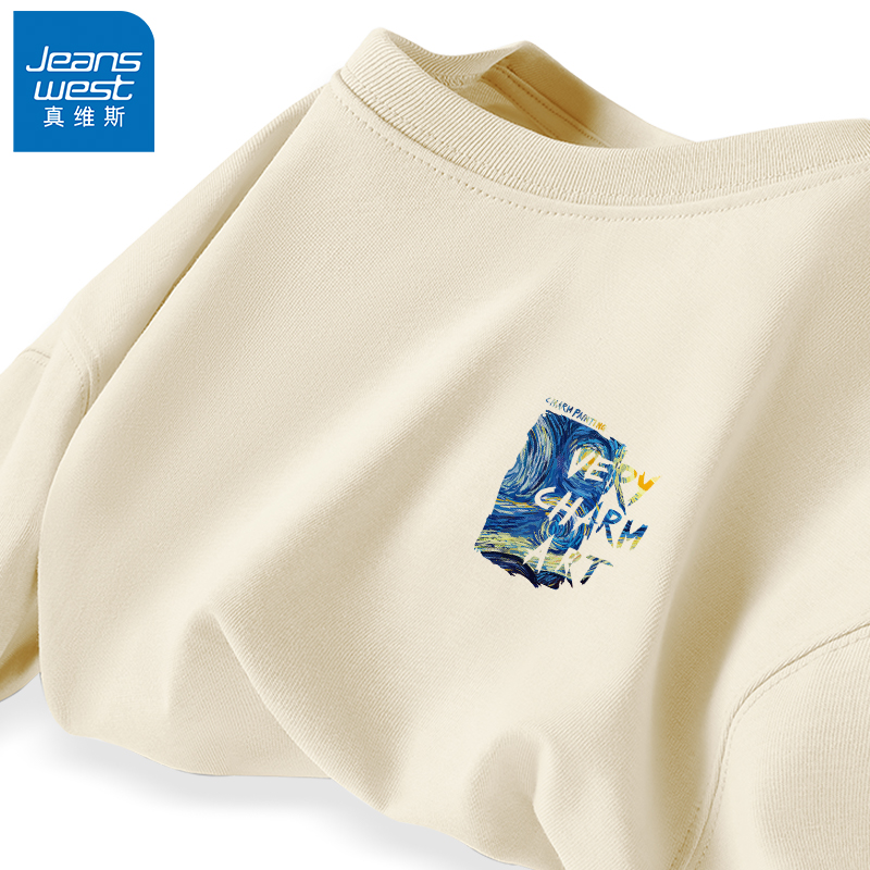 GV真维斯夏季短袖T恤男青少年纯棉五分袖男生潮牌潮流小领口上衣A